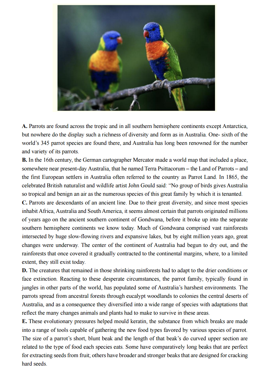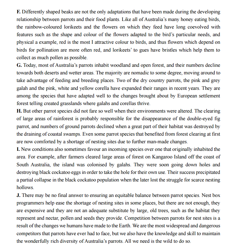 Passage 2:Australian Parrots and Their Adaptation to Habitat Change
