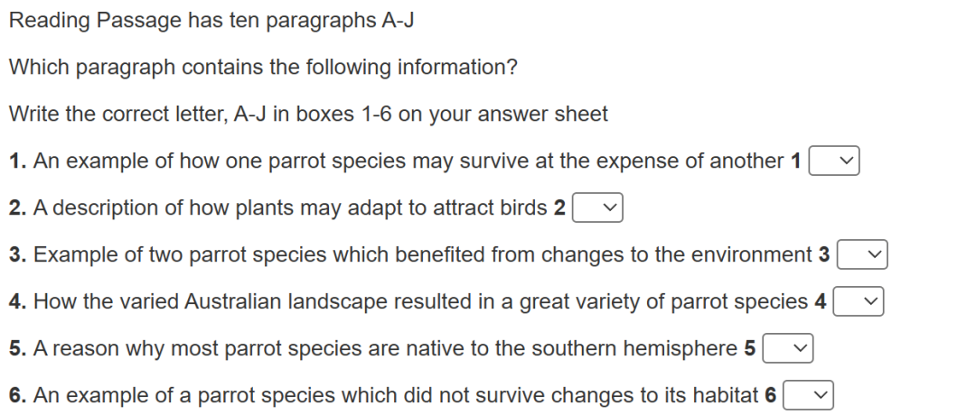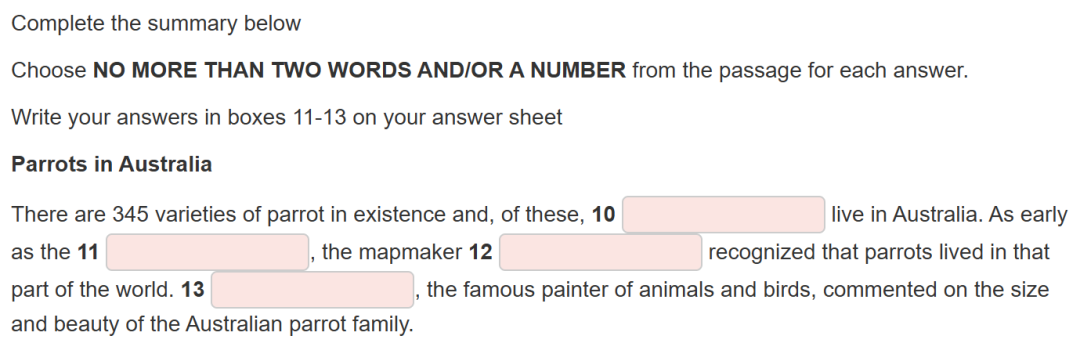 三月份才送走Moa,今天便又和Australian Parrots相见,澳洲鹦鹉可谓是经典考题,早在14年就考过,23年、25年也有考察,本次考察的文本和题型基本同之前保持一致。三月的分析说到,纵观近几年的笔试考情,鸟类,尤其是新西兰的一些或濒危或灭绝的鸟类,频繁考察,如Kea(啄羊鹦鹉)、Kiwi (几维鸟,新西兰国鸟)、Takahē(南秧鸡)、Laughing Owl(笑鸮)、Kākāpō(鸮鹦鹉,新西兰特有、不会飞的鹦鹉)。核心考点通常集中在物种特征、生存威胁、保护措施三方面;本文重点则是讲述了自然环境变化及人类活动对澳洲鹦鹉栖息地(habitat)所造成的影响,刻画了其在适应(adaptation)这些变化中的压力与挣扎,如进化出异形喙部(beak)、依靠游牧迁徙觅食生存等,文本脉络清晰。动物类话题的练习,可以参考也剑20T1P1 The Kākāpō、17T3P1 The thylacine等。
