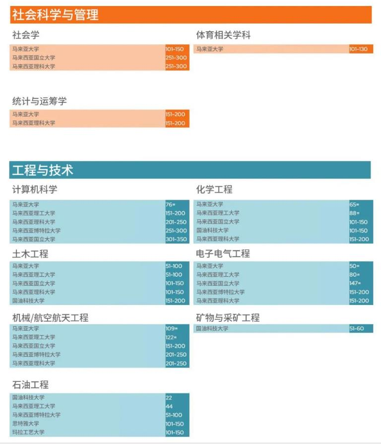 在工程与技术领域中,马来西亚高校共有3个学科上榜世界前50名,另有8个学科跻身世界前100名。