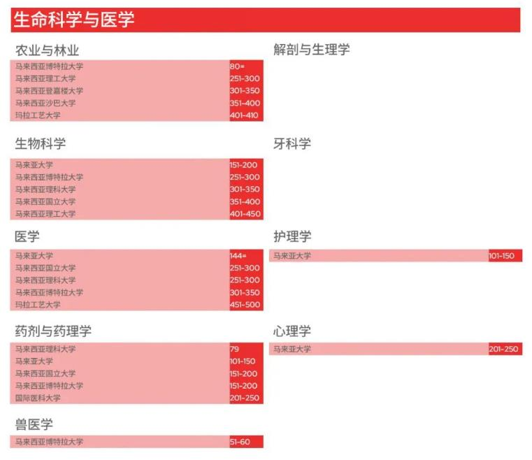在生命科学与医学领域,马来西亚高校共有3个学科跻身世界前100名。