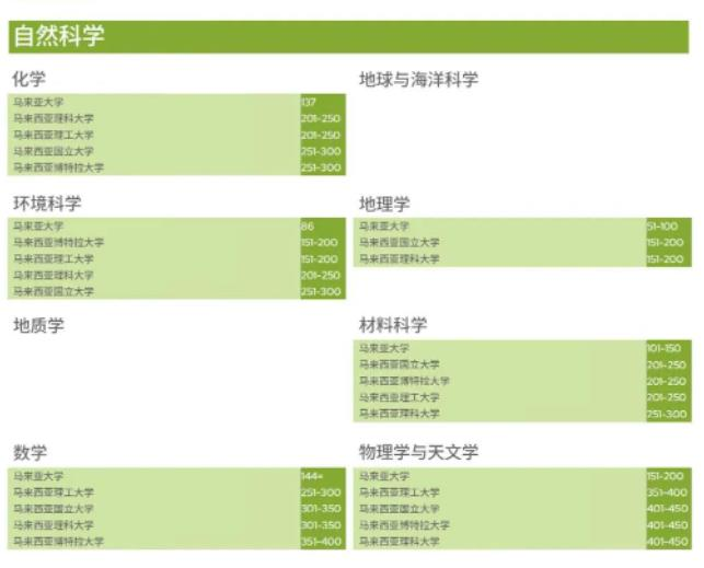 在自然科学领域,马来西亚高校共有2个学科跻身世界前100名。
