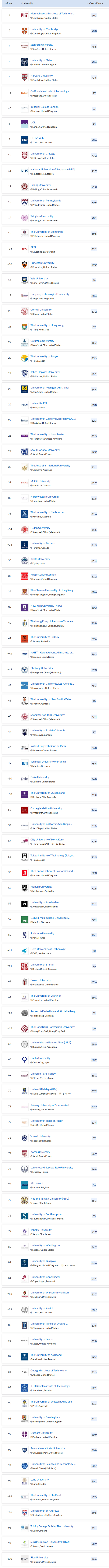 以上就是QS世界大学排名100的学校,最后小编要告诉大家的是,排名只是一个相对的结果,而每年学校名次有一定程度的浮动也都很正常,只要这所大学适合你,给你带来了独特的学习生活体验,留下了一段难忘的回忆,就是我们心中的好大学。