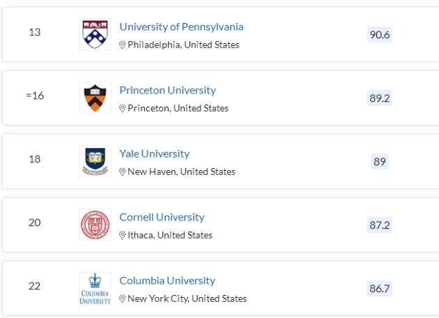 今年普林斯顿大学从第20名提升至16名,UCB(第27名)和纽约大学(第39名)均有所上升。