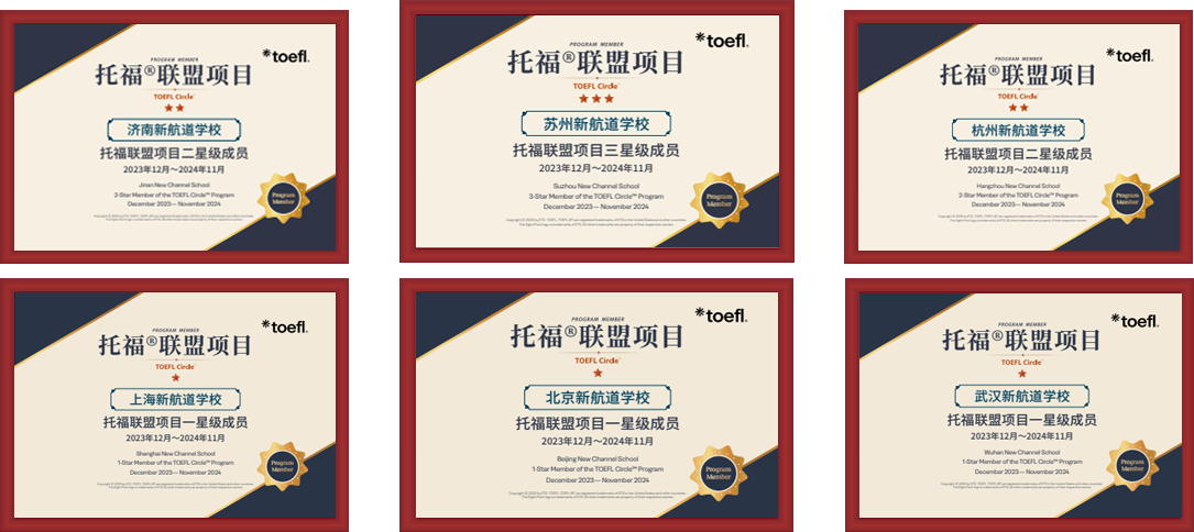 2024年度的托福联盟项目成员评级中,新航道所属分校一共获得了7项托福联盟星级合作伙伴奖